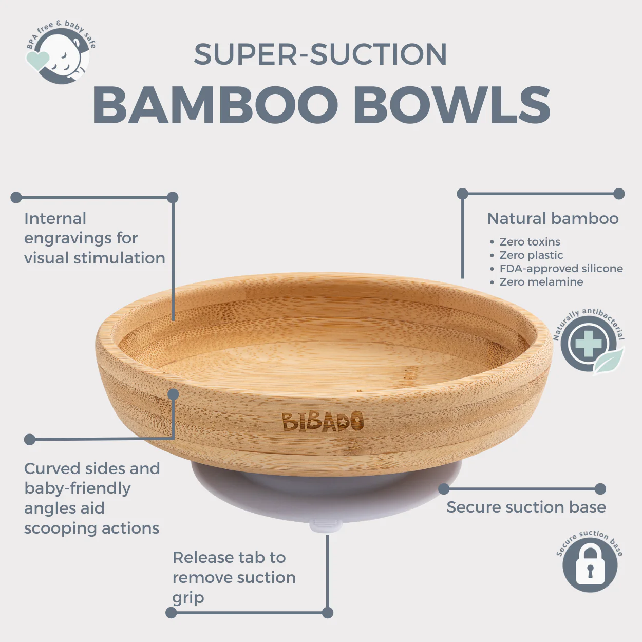 Nourish their feeding skills with Bibado's natural, baby-safe bamboo suction bowls. Unique curved sides and baby-friendly angles are designed to maximise scooping actions and master cutlery control.