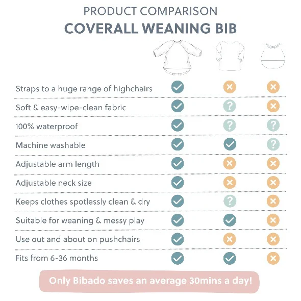 Bibado’s award-winning Coverall Weaning Bib, which will keep your little one spotlessly clean after the messiest of meals or activities, along with a set of matching attachable cutlery.